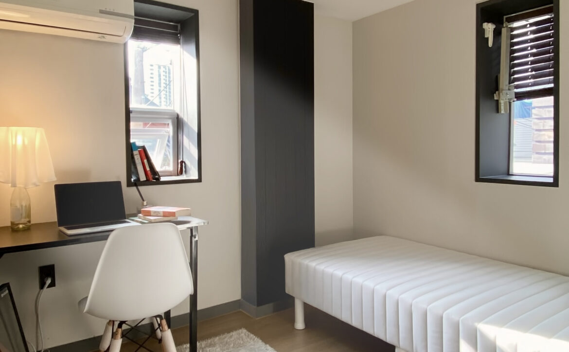 • Amenities: AC/Heater, mini refrigerator, Wi-Fi, cafe lounge, vending machine, work station, library, community room, cinema room, relax room, kitchen and canteen, laundry room, rooftop terrace available depending on the location.