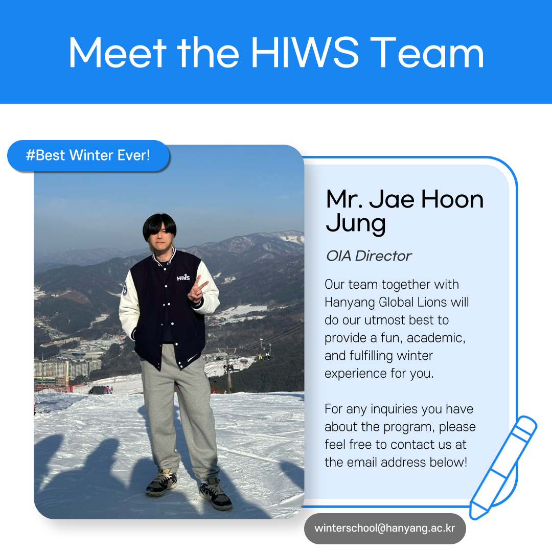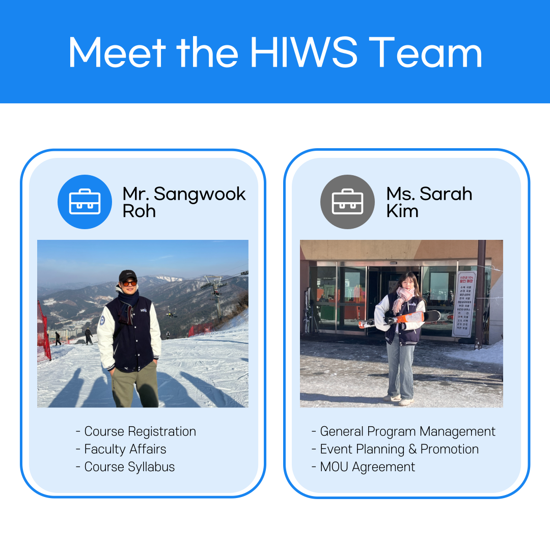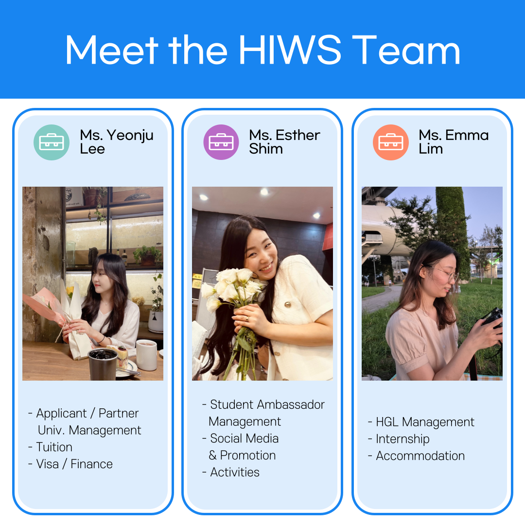 First off, we would like to introduce our HIWS Team and Hanyang Global Lions who will be assisting you throughout your entire journey!